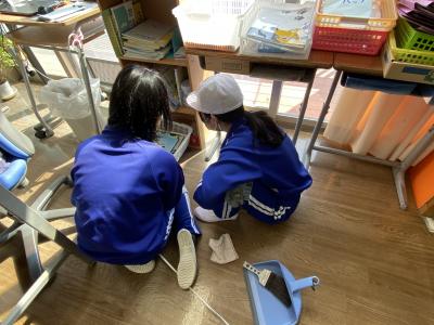 2021年3月19日 13時05分今日は,1年の締めくくりとして大掃除をしています。普段使用している下駄箱や教室の机,ロッカーなどのお掃除を丁寧に行っています。