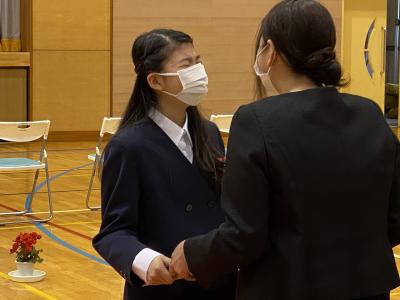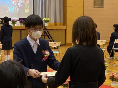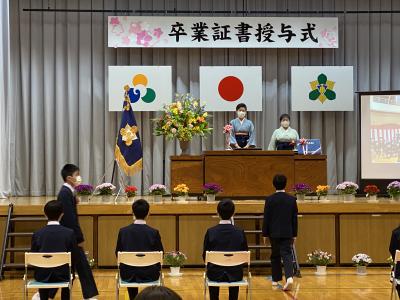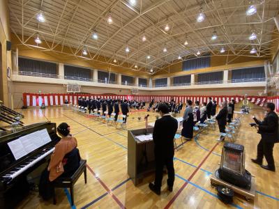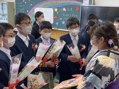 2021年3月23日 11時05分6年生は,八沢小学校での最後の行事,「令和2年度卒業証書授与式」に参加しています。例年よりは縮小した式ですが,卒業生一人一人が堂々とした立派な式になることができました。式のあとは記念撮影を行い,学級で最後の学活を行いました。