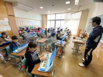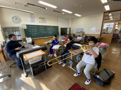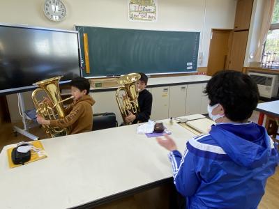 2021年4月7日 14時59分今日から金管クラブが始まります。6年生が,真っ先に体育館に入場し,後から来た4・5年生を誘導しています。さすが6年生です。昨年度は,練習回数も少なく,思うように演奏できない悔しさを経ての練習開始なので,一生懸命に取り組んでいます。