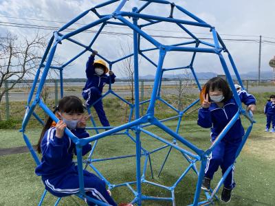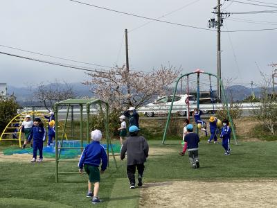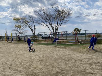 2021年4月9日 10時15分子ども達は元気です。天気はいいのですが,普段より冷たい風が吹いてるにもかかわらず,休み時間に校庭に出て元気に走っています。さすが,風の子です。1年生も,今週で生活にも慣れてきて,全員外で元気に遊んでいます。
