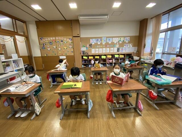 2021年6月29日 08時03分一年生は,朝の読書に親しんでいます。自分で選んだ本に集中して読んでいます。八沢小では,今読書ビンゴを開催中です。
