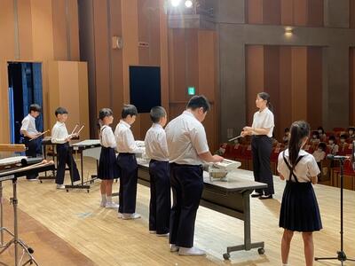 2021年10月5日 08時59分今日は,鹿島区音楽祭です。トップバッターとして,5年生が発表しています。堂々とした演奏でした。