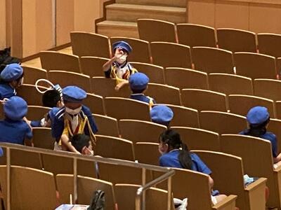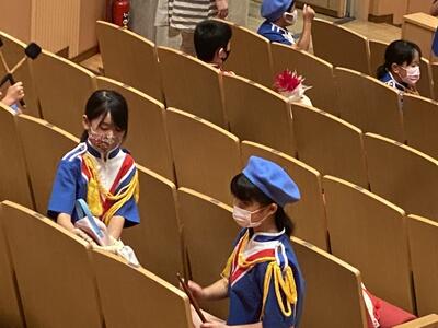 2021年10月5日 09時59分前半の部が終了して、ただいま休憩中です。金管の子たちは,別室で練習していました。