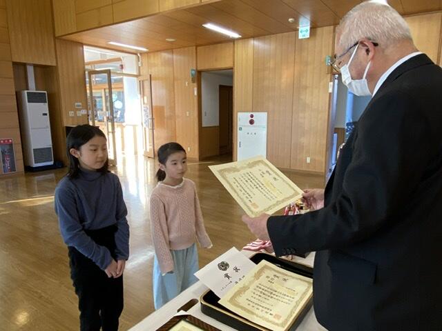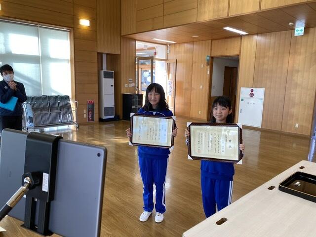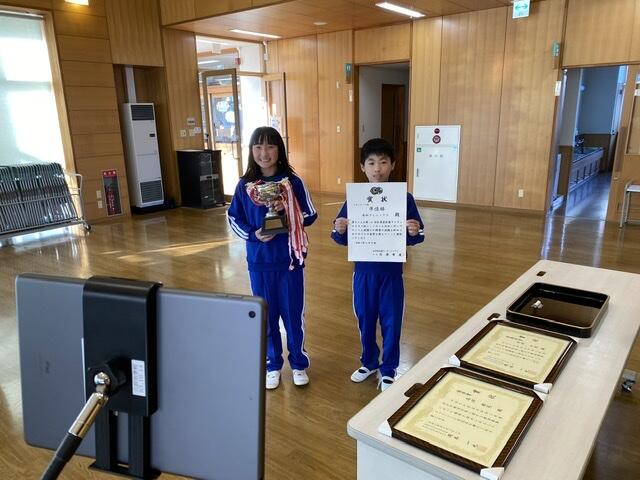 昼休みに表彰披露を行いました。密を避けてリモートでの実施にも慣れてきています。文化面やスポーツ面でも八沢っ子は、大活躍しています。