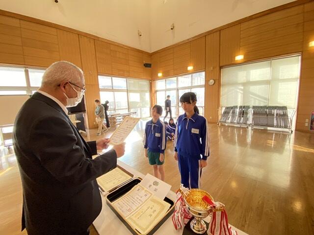 2021年11月30日 13時35分昼休みに表彰披露を行いました。密を避けてリモートでの実施にも慣れてきています。文化面やスポーツ面でも八沢っ子は、大活躍しています。