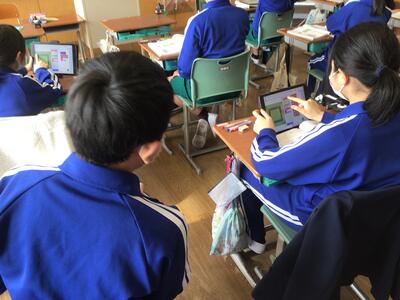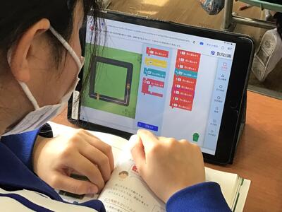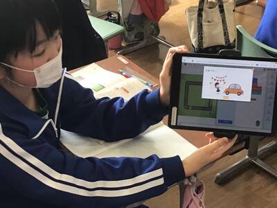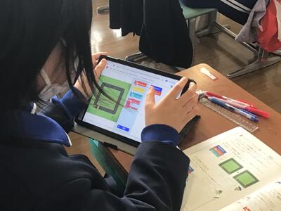 2022年2月8日 11時30分5年生の算数でプログラミングを行いました。プログラミングは図形の構成や座標の入力など,算数・数学の要素が多く含まれており学習の応用であるともいえます。また,パソコンやタブレットは使うだけではなく,自分でアイディアをもとに創造するものでもあります。これをきっかけに,様々なプログラミングに挑戦していきたいと思います。自分でプログラミングをした結果を友達同士見せ合って確認していました。