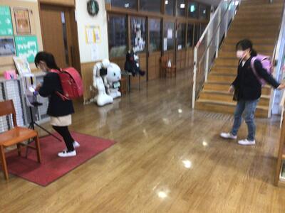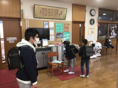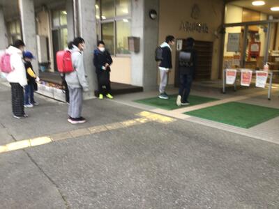 毎朝,昇降口で検温と消毒を行うのが日課です。バスの到着時刻には多少昇降口が混み合います。そんな時は,誰に指示されるわけでもなく,上級生が下級生を先に昇降口に入れて順番を待ってくれています。ソーシャルディスタンスにも気をつけて,寒くても外で待ってくれています。このような何気ない気配りが思いやりのある行動につながるのだろうと思います。