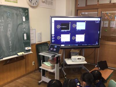 2022年2月10日 09時16分1年生の国語で,幼稚園のみなさんに答えてもらうクイズを作っています。ロイロノートを使って,問題や答えが見やすくなるように工夫しているようです。誰にどのように伝えるのか,相手意識を持つことが大切です。