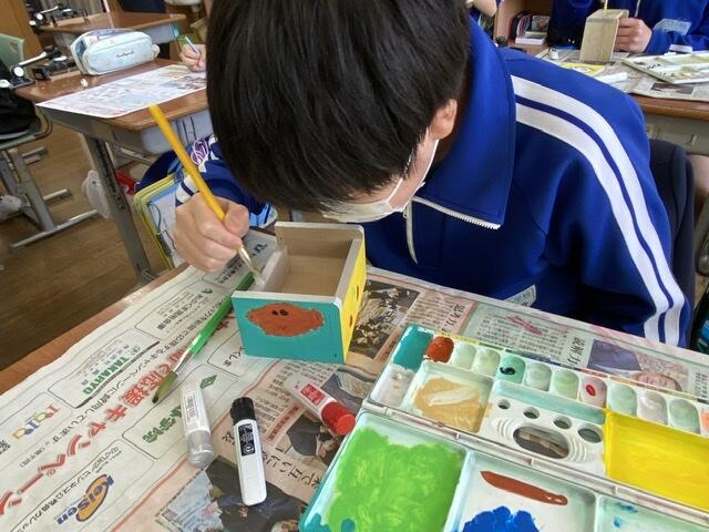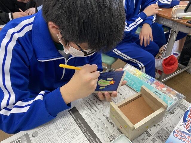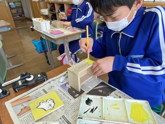2022年3月9日 13時54分6年生は,卒業記念でオルゴール作りをしています。木製の箱を彫刻して模様をつけ,色を染めていました。中に入るオルゴールは,同窓会さんからいただいた八沢小校歌の曲です。思い出のオルゴールになりますね。