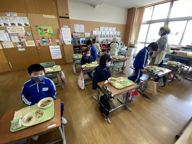 2022年3月16日 12時15分1〜4年生は,今年度最後の給食です。今年度もいつも美味しい給食を毎日楽しみにしていました。たくさんの人の協力で目の前にある給食になることに感謝していただきました。