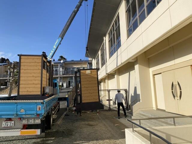 2022年3月17日 16時20分昨夜の地震の被害がありました。鹿島区ではまだ断水が続いていますが,明日からの登校再開の準備が整いました。飲み水の準備では市教委の先生方からペットボトルの水が準備され,仮設トイレの設置も完了しました。教室も元の状態に近づけることができました。明日,安心して学校に来てほしいです。ですが,まだまだ余震などに気をつけてお過ごしください。なお,仮設トイレは地域の方も使用できます。入りやすいように今度は体育館側に設置しましたのでお気軽にお使いください。