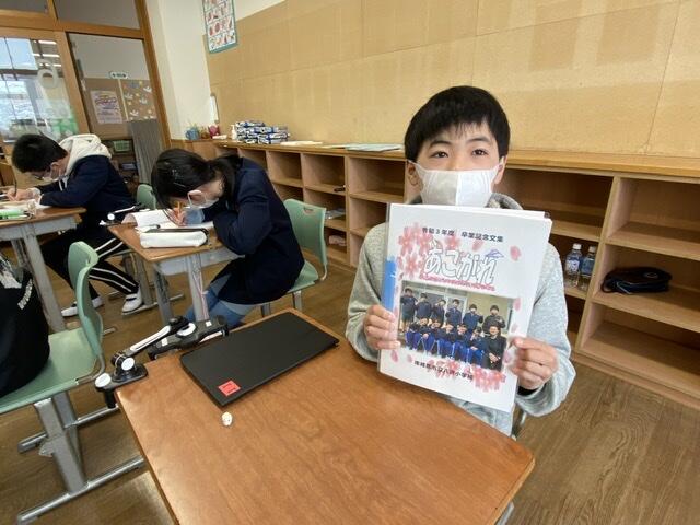 2022年3月22日 11時26分6年生は,今まで作成していた卒業文集が完成し,みんなで寄せ書きを行っていました。卒業式を明日に控え,気持ちを作っています。