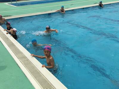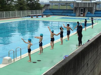 2022年6月17日 10時52分3・4年生の水泳の学習です。今年は初めての水泳ですが,昨年度までの経験で水に慣れることができていまあす。水を怖がったりすることなく元気よく水泳の学習ができていました。本校では,水泳の授業は必ず3名以上の指導者がつき,安全に配慮しながら,能力に応じて学習できるよう支援しています。