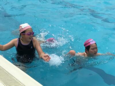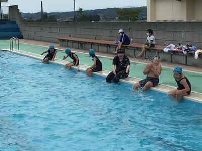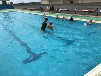 3・4年生の水泳の学習です。今年は初めての水泳ですが,昨年度までの経験で水に慣れることができていまあす。水を怖がったりすることなく元気よく水泳の学習ができていました。本校では,水泳の授業は必ず3名以上の指導者がつき,安全に配慮しながら,能力に応じて学習できるよう支援しています。