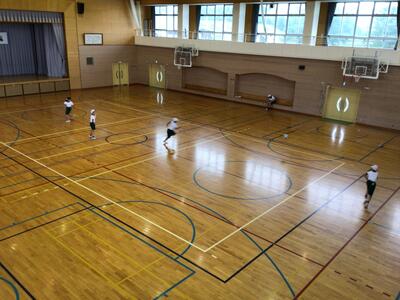晴れていれば校庭でサッカーを楽しんでいるのですが、あいにくの雨。元気のいい4年生は、体育館でフットサルをはじめました。