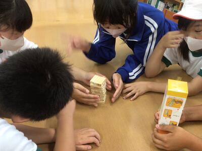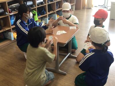 今日の昼休みはやさわっ子タイムです。雨で校庭が使えないこともありますが、トランプやミニ卓球、テーブルゲーム、かくれんぼなど様々な遊びが発生していました。5,6年生がルールを工夫したり説明したりしながら楽しく活動していました。体育館では、班対抗のドッジボールで盛り上がっていました。