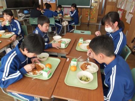 給食では味付けにチリパウダーとチリソースを使ってピリ辛に仕上げてあります。