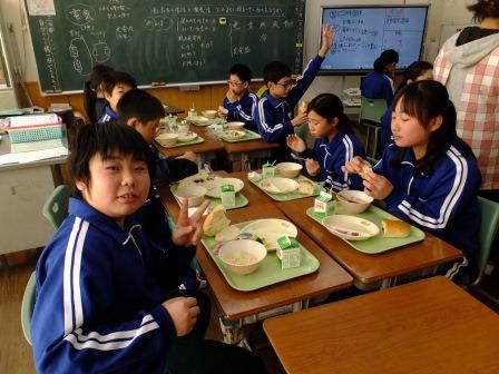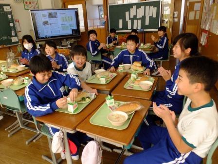 6年教室は、食欲旺盛な子どもたちがいっぱい、おかわりする姿が見られました。