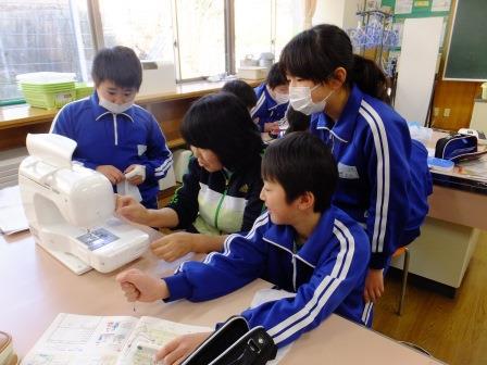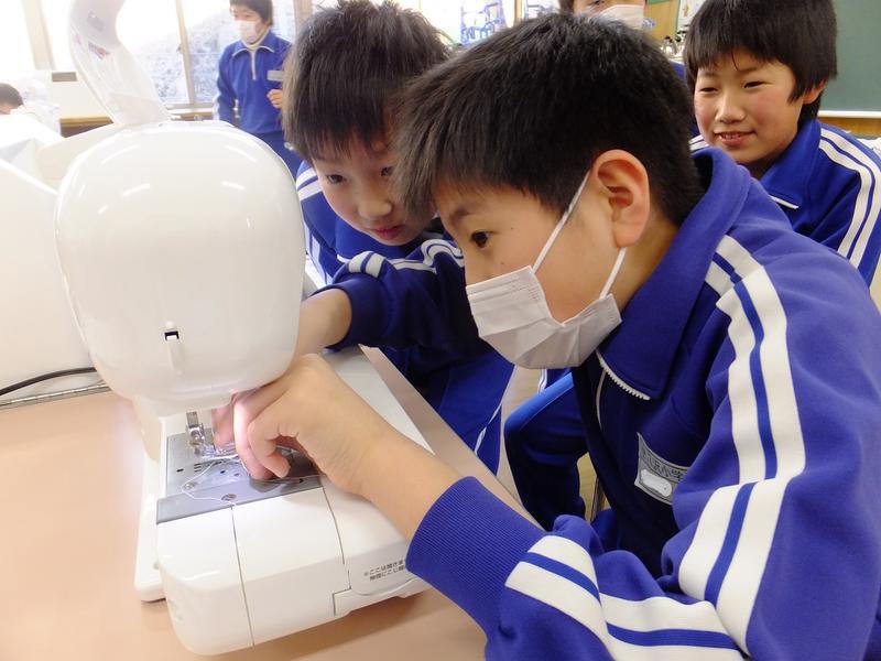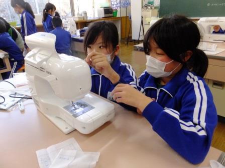 2019年1月31日 13時11分3・4校時目、家庭科室では5年生がミシンの学習をしていました。