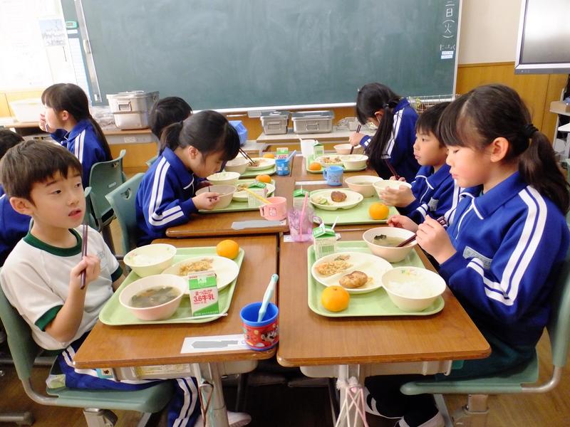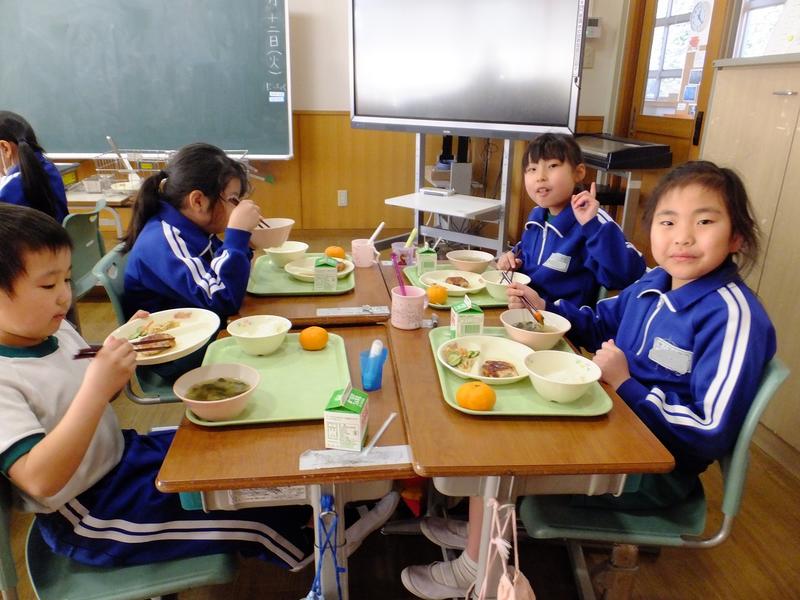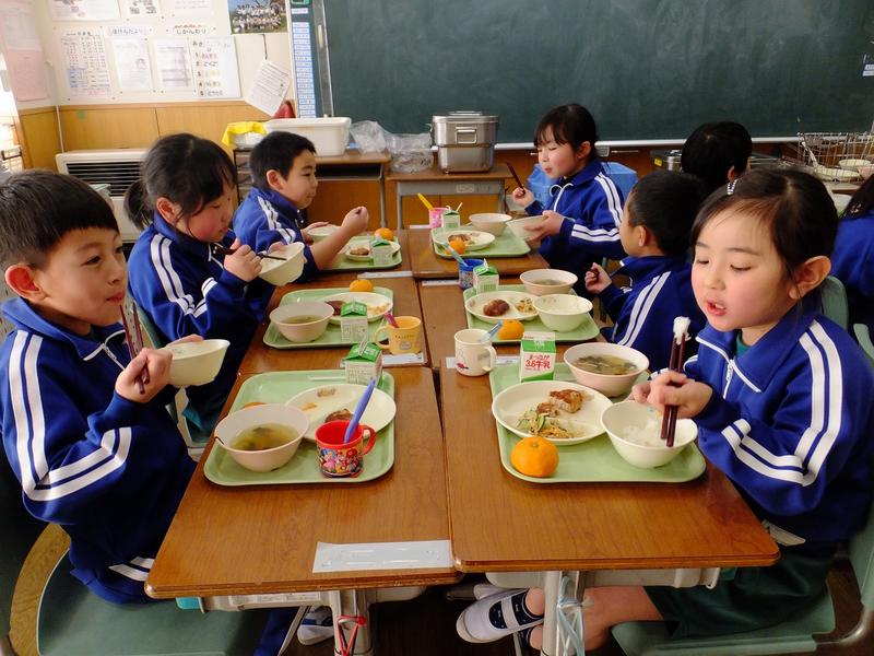 子どもたちは、調理員さんが作ってくれた給食を味わいながら楽しく食べていました。