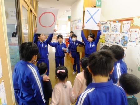 学校の中を探検しながら〇✕クイズをしたり、絵本の読み聞かせをしたりと、5年生がいろいろと工夫してくれたので楽しく過ごすことができたようです。