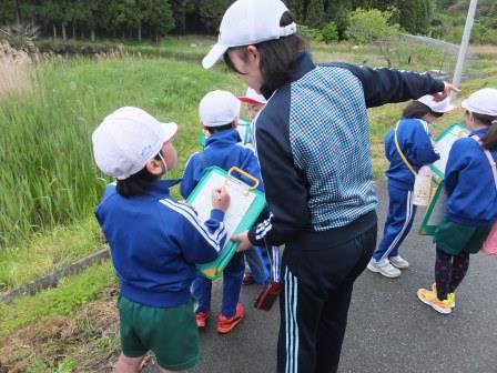 道路標識のある場所、田や畑の多い所、家が集まっている所など、観察して分かったことをメモしました。