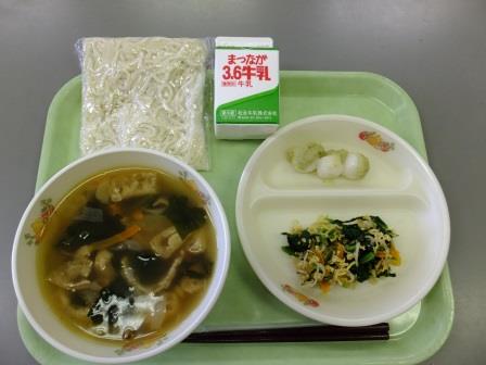 メニューは、「肉うどん、小松菜の錦糸あえ、ずんだ団子、牛乳」でした。