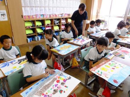 1年教室では、図工「乗ってみたいな行きたいな」の学習でした。