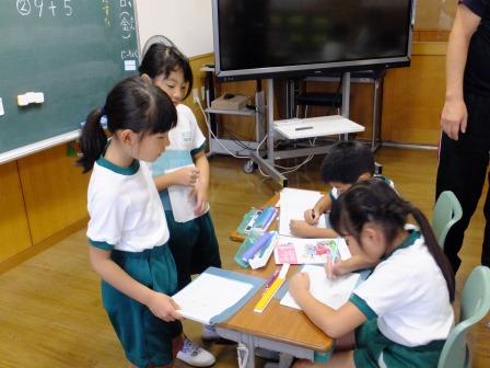 先生と一緒に考えたり、友達と考えを交流したりしていました。